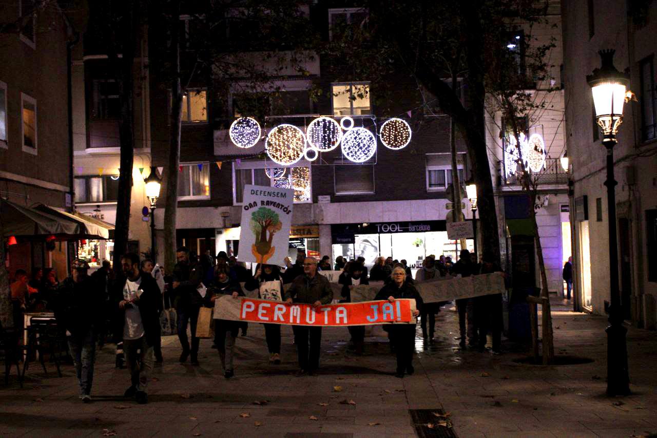 En el manifest que han llegit, també aprofiten per criticar que tots els nous espais oberts que s’estan dissenyant al barri, s’estan pavimentant, recordant que no hi ha un sol arbre a les estrenades places Mariano Meseguer i Angelina Trallero, i que el parc forestal del Castell de l’Oreneta s’ha començat a reformar asfaltant camins. “A Can Raventós sí que n’hi ha, d’arbres. Arbres madurs i imponents que les veïnes i els veïns volem que continuïn vius”, apunta l’escrit veïnal.