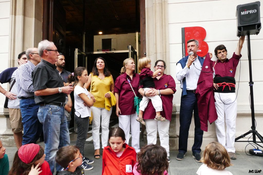 Després que les 3 colles fessin els pilars d’entrada, es va fer entrega d’una camisa de la colla de Sarrià, de color vi amb una petxina brodada a l’esquena, al Jordi Martí, regidor president del districte de Sarrià- Sant Gervasi. Martí ha respost breument agraïnt el gest que, ha dit, “restarà sempre en la memòria”.