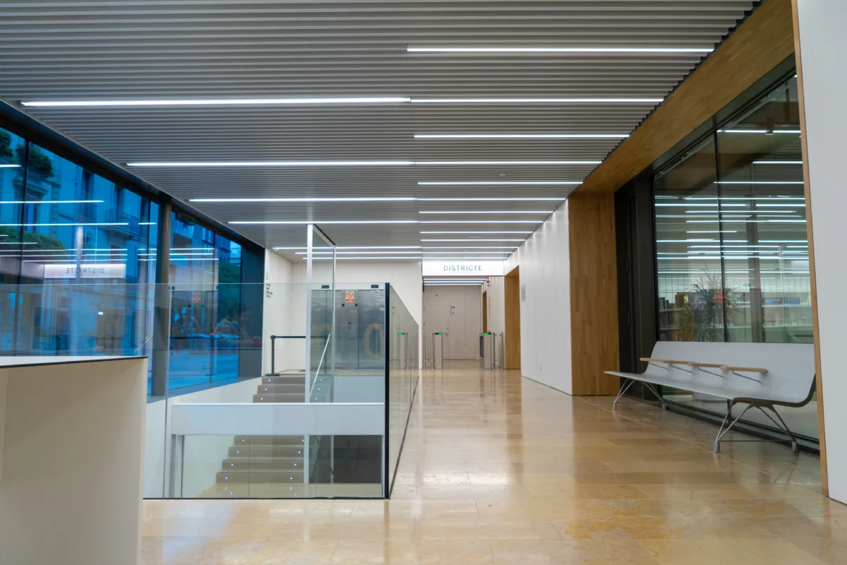 L’edifici té una planta gairebé quadrada, amb una superfície de 5.397,20 m², i acull a la planta baixa i primera la biblioteca, amb una superfície de 1.450 m². Disposa d’una aula digital i diversos espais polivalents, quatre sales de treball per a grups reduïts i un espai infantil.