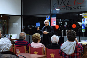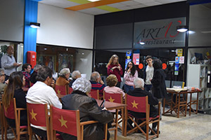 El vespre va començar amb una representació de l’escola d’interpretació Actua, on es simulava una classe amb alumnes i la seva professora per parlar i reflexionar sobre la literatura i el paper dels editors i dels escriptors, tot amb un to d’humor i enginy que van fer que les presentacions dels llibres de l’editorial fossin molt dinàmiques. Sense més dilacions van donar pas a alguns dels escriptors que han treballat amb l’editorial aquest any: Jordi Querol, Amor Pérez, Tanit Tubau, Josep González i també una ONG, “Stop malària” que ha publicat un llibre amb l’editorial per recaptar fons; els autors i autores, van tenir l’oportunitat d’explicar les seves obres d’una manera personal al públic.