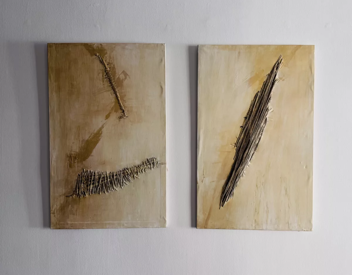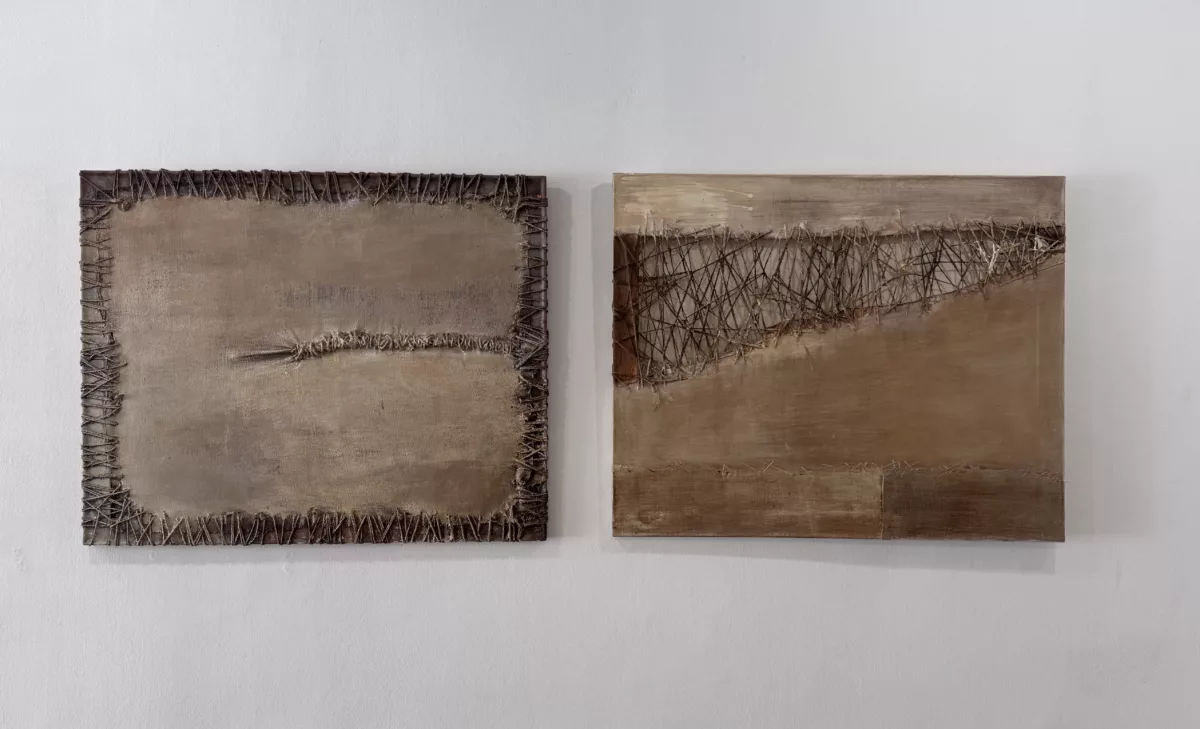 L’exposició El biaix de la pintura, comissariada per Elina Norandi, reuneix tretze obres que reivindiquen el fil, la costura i el brodat com a llenguatge artístic.