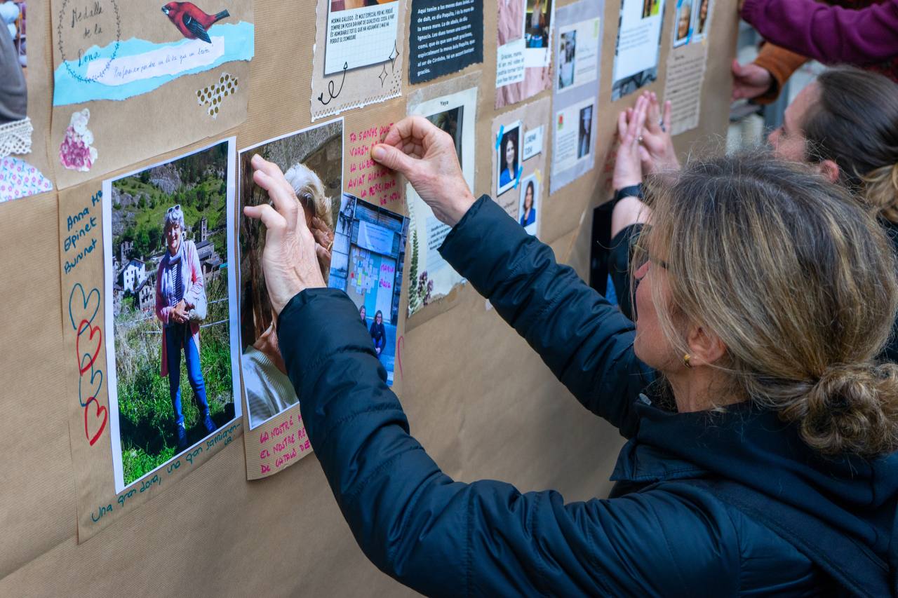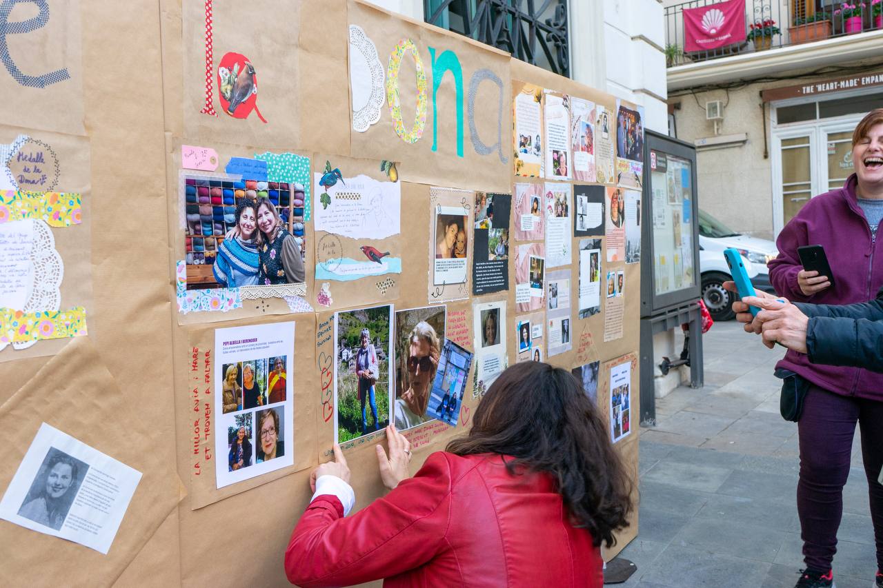 El Dia Internacional de les Dones, el 8M, s’ha commemorat a Sarrià-Sant Gervasi dies després, amb la creació d’un mural col·lectiu fet el divendres 17 de març a la tarda a la plaça del Consell de la Vila. Tothom que volia podia portar una fotografia i deixar un breu text escrit sobre aquella dona que ha estat important a la seva vida. Unes històries acompanyades de la lectura d’un manifest i d’una exhibició de cultura popular amb castelleres, geganteres, diablesses i tabaleres.